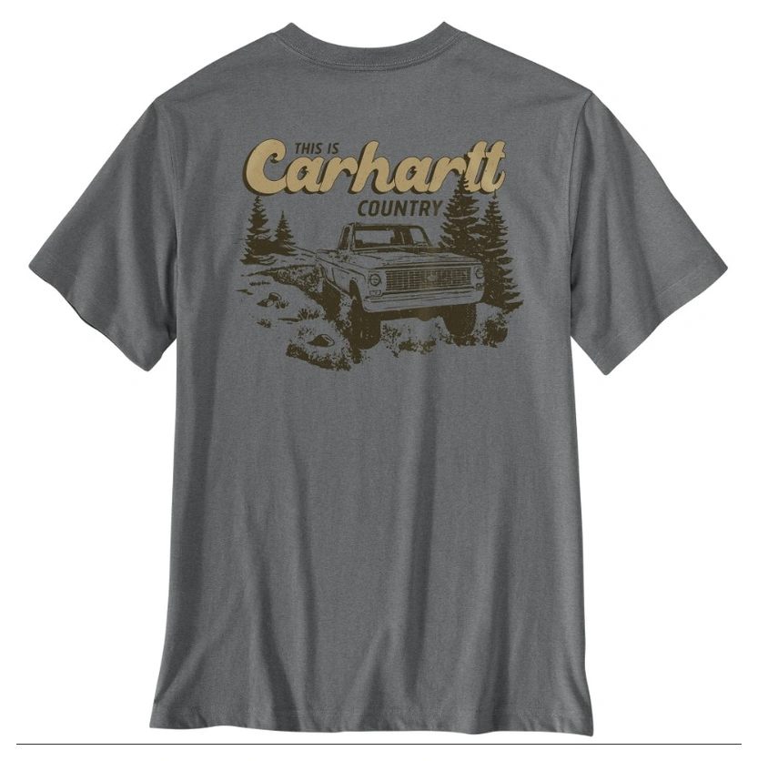 Whether you're hauling gear for work, heading into town for dinner, or mudding in the back 40, this Carhartt truck graphic tee has you covered. You don't have to be unloading a truck bed to appreciate the side-seam construction that minimizes twisting and the relaxed fit that sits closer to the body to prevent snagging. Throw your sunglasses in the reinforced chest pocket and hit the road.